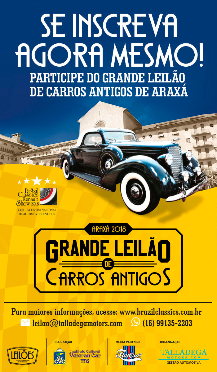 Grande Leilão de Carros Antigos de Araxá, as inscrições terminam dia 30 de abril.