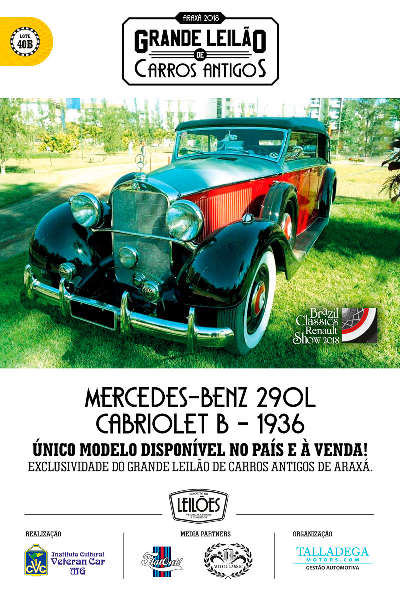 um Mercedes-Benz W18 Typ 290 Lang Cabriolet B - ano 1936, estimado em R$ 2.400.000,00 / R$ 2.900.000,00.